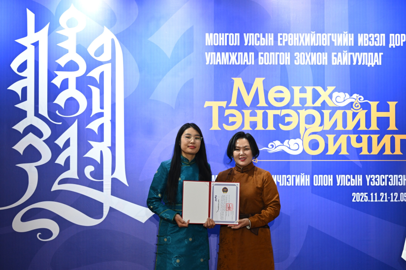 Монгол Улсын Ерөнхийлөгчийн санаачилгаар зохион байгуулагддаг “Мөнх тэнгэрийн бичиг-2025” үзэсгэлэнгийн шилдэг бүтээлийн эзэд тодорлоо. Үзэсгэлэнд Монгол Улсаас гадна ОХУ-ын Бүгд Найрамдах Буриад улс, Халимаг Улс, БНХАУ-ын ӨМӨЗО, Франц улсаас нийт 260 гаруй уран бүтээл дэлгэгдсэн билээ.